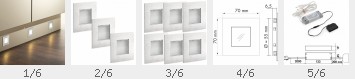 Cosi Farbwechsel LED Sockelleuchten-Set mit Schalter | Edelstahl | 3/6 Leuchten | 0,3 Watt | 46 Lumen | von 2700°K warmweiß bis 6500° K kaltweiß regelbar | Bohr Ø 55 mm | inkl. Konverter