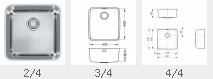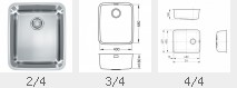 Unterbauspüle Variant 20 | Edelstahl | Außenmaß 340 x 420 mm | Einbaumaß nach Schablone | Beckentiefe 175 mm | Schrankbreite ab 400 mm