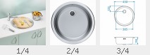 Spüle rund Form 10 in Edelstahl Glatt oder Leinenstruktur | Reversibel | ohne Hahnloch | Außenmaß Ø 450 mm | Einbaumaß Ø 432 mm | Beckentiefe 155 mm | Schrankbreite ab 450 mm