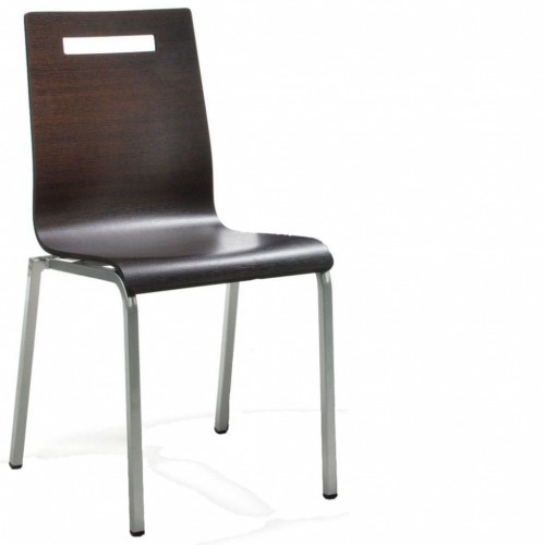 Stapelstuhl Bistrostuhl | Gestell: chrom oder perlsilber | Sitzhöhe 46 cm | Sitzfläche und Rückenformschale in Wenge-Laminat | Made in Germany