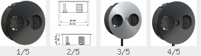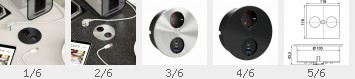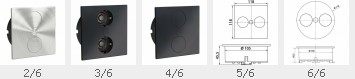 Duplex E Doppelsteckdose rund in Edelstahl, oder schwarz matt | Anschlußkabel 2000 mm | Kernloch Ø 105 mm | Einbautiefe ca. 48mm | für Plattenstärke ab 8 mm | flächenbündig einbaubar