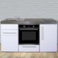 Studentenküchen 160 cm breit mit Backofen. Die Edelstahl Pantryabdeckung (Top-Version) ist mit einem Einbauspülbecken mit Abtropffläche Ausgestattet. Ab- und Überlaufgarnitur, sowie eine 35 mm Hahnlochbohrung gehören ebenso dazu. Die aus pulverbeschichtetem Stahlblech gefertigte Miniküche besitzt eine doppelwandige Front, die innen mit einer speziellen Premiumdämmung gefüllt sind. Unterhalb des Backofens befindet sich eine ausziehbare Schublade. Die Miniküche ist durch einen 60cm Hochschrank erweiterbar auf 220 cm. Der Hochschrank bietet nicht nur viel Platz für Geschirr oder Lebensmittel, sondern kann ebenso für andere Notwendigkeiten des Lebens auf kleinem Raum dienen. Ein absolutes Highlight in Ihrem Objekt! Die Lieferung erfolgt im vormontierten Zustand, so, dass nur wenig Aufbauzeit benötigt wird.