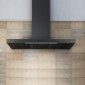 T-Förmige Wandhaube in schwarz matt mit Wärmesensor | 3 Leistungsstufen | Touch-Control | Breite 90cm | Luftausgang Ø 150 mm | 2 x 4,8 W LED Beleuchtung | max. 617 m³/h | max. 65 dB (A)