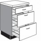 Unterschrank mit 1 Schubkasten und 2 Auszügen 723 mm hoch, in den breiten von 400, 450, 500, 600 mm wählbar.