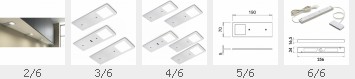Vetro LED Unterbodenleuchten Set | Aluminiumgehäuse | 2/3/5 Leuchten wählbar | 4 Watt | 90 Lumen | 4000° K neutralweiß | inkl. LED-Konverter | Dimmfunktion mit Memoryfunktion | Gehäuse: weiss