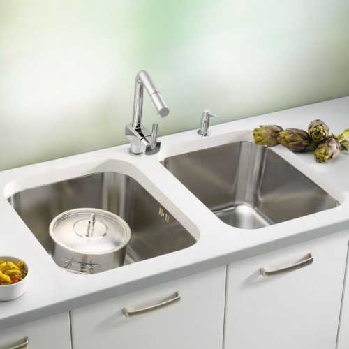 Spülen der Produktlinie Duo und Variant umfassen mehrere Kombinationen von Unterbaubecken, die sich bestens der Arbeitsplatte aus Naturstein, Mineralmaterialien oder wasserdicht verarbeiteten Holzwerkstoffen anpassen. Sie können von der Unterseite der Arbeitsplatte eingebaut werden. Die Spülen der Produktlinie Duo und Variant werden aus hochwertigem rostfreiem Edelstahl in der Oberflächenstruktur SATIN gefertigt. Zur Verfügung stehen sie in verschiedenen Größen und Formen. Sinnvolles Zubehör steht zur Verfügung, wie Holzbretter und Abtropfbecken.