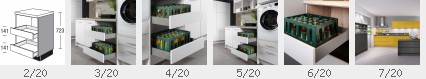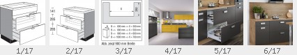 Unterschrank für Induktionskochfeld, 2 Auszüge, 1 Innenschubkasten | Breite 600/800/900/1000 mm | Impuls | 2 Auszüge | 1 Innenschubkasten | 1 Hitzeschutzboden | 828/878/928 mm Höhe | 560 mm Korpustiefe | Farbe wählbar