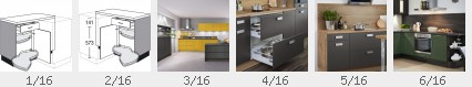 Eckunterschrank mit 2 voll ausschwenkbare LeMans Drehböden 1100 mm Breite, 1 Schublade| Impuls | Planm. 1100x650 mm | 828/878/928 mm Höhe | 1 Drehtür | 560 mm tiefe | 1 Schublade | opt.mit Selbsteinzug| Farbe wählbar