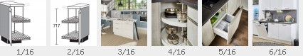 Eck-Unterschrank mit Selbsteinzug und Dämpfung | 1 Drehtür 500 mm breit | 2 voll auschwenkbare Drehböden LeMans | 1 glatte Anbauplatte | 1 lose Blende | Pino | 1150-1500 mm Breite | 878/828/928 mm Höhe | Farbe wählbar