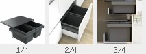 Montage: Einfache Selbstmontage Lieferzeit: 3 Werktage (Mo.-Sa.) 1. Unterschrankbreite 900 mm 2. Behältervolumen 48 (3 x 16) Liter