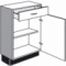 Vitrinen-Unterschrank mit 1 Drehtür, 1 verstellbarer Fachboden, und 1 Schublade in 300/400/450/500/600 mm Breite wählbar.